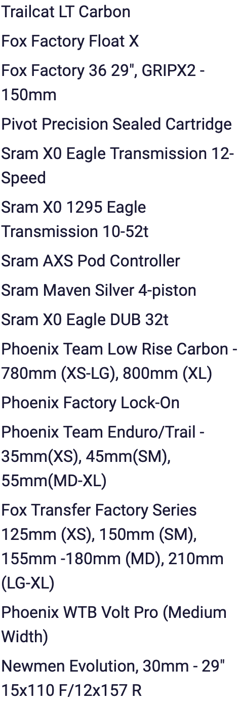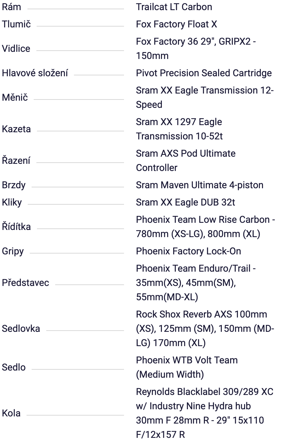 Všechny specifikace najdete na stránkách pivotcycles.com.